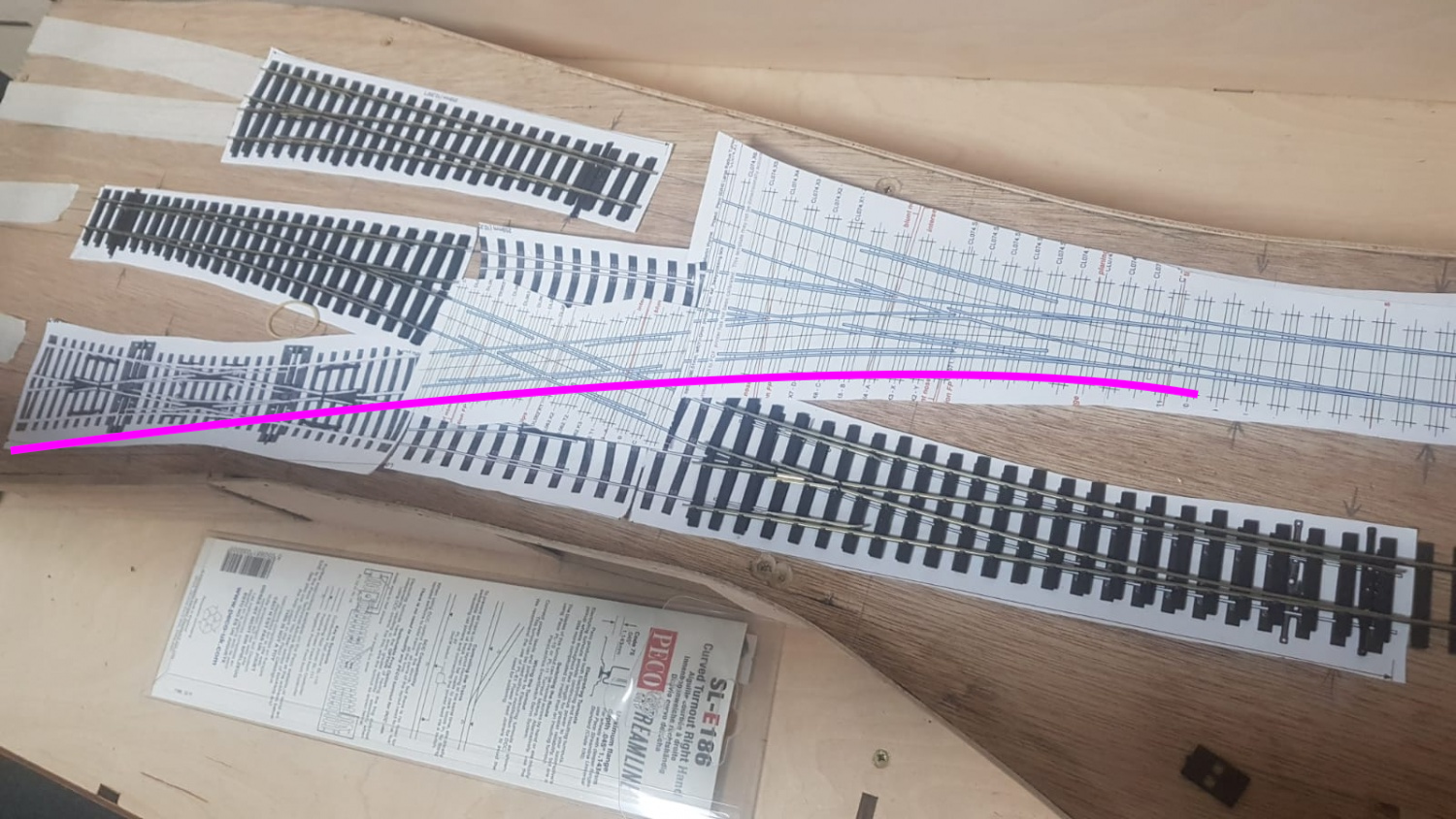 The major problem I encountered was that the only commercially available pointwork in Peco Bullhead at the time as a plain turnout, so I needed to hand-lay a three-way into a diamond crossing into a double-slip: