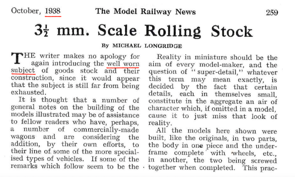 I saw this quote in an issue of the British H0 Journal Satellite (Issue 79), referencing an issue of Model Railway News, and thought it was too good not to quote: