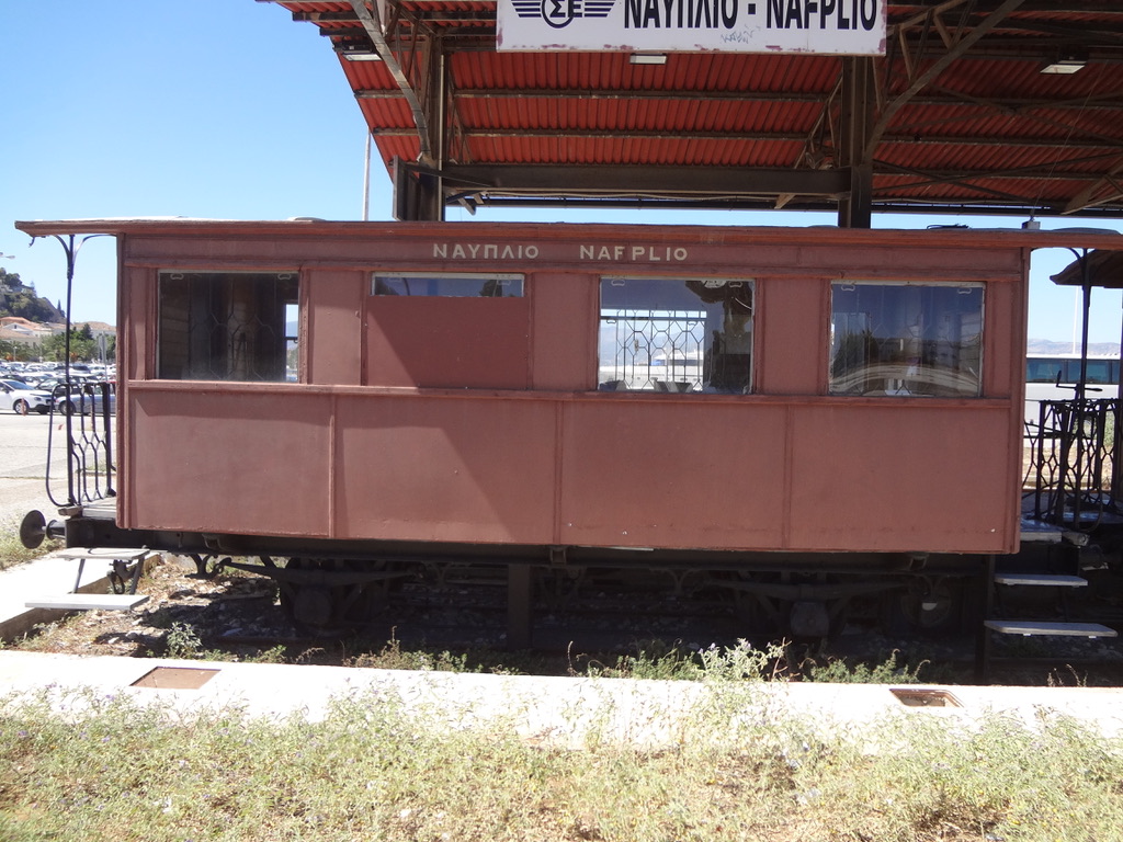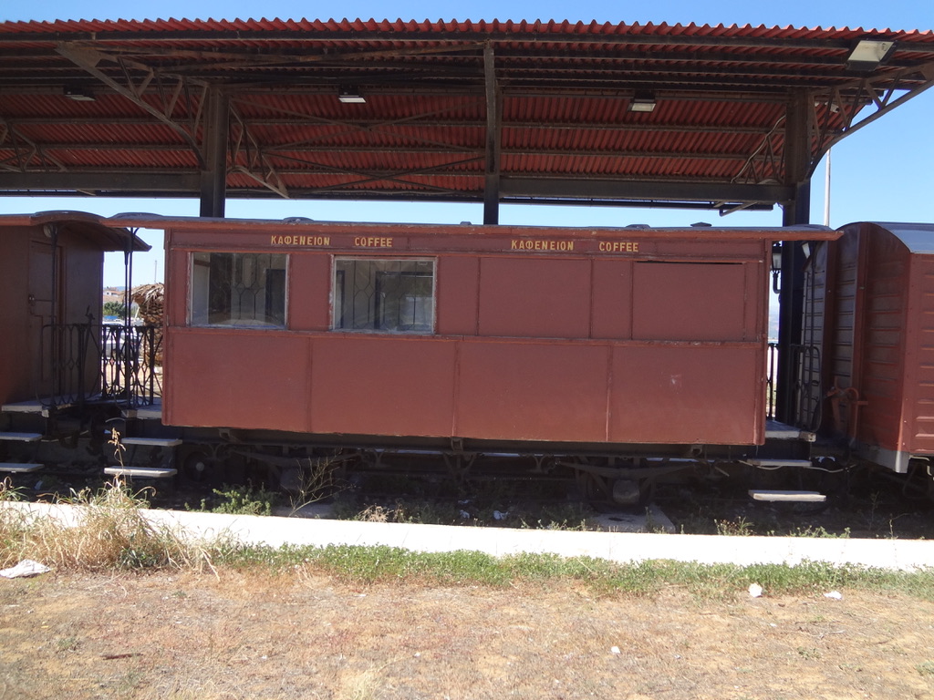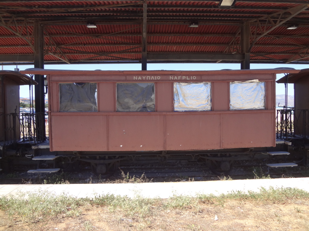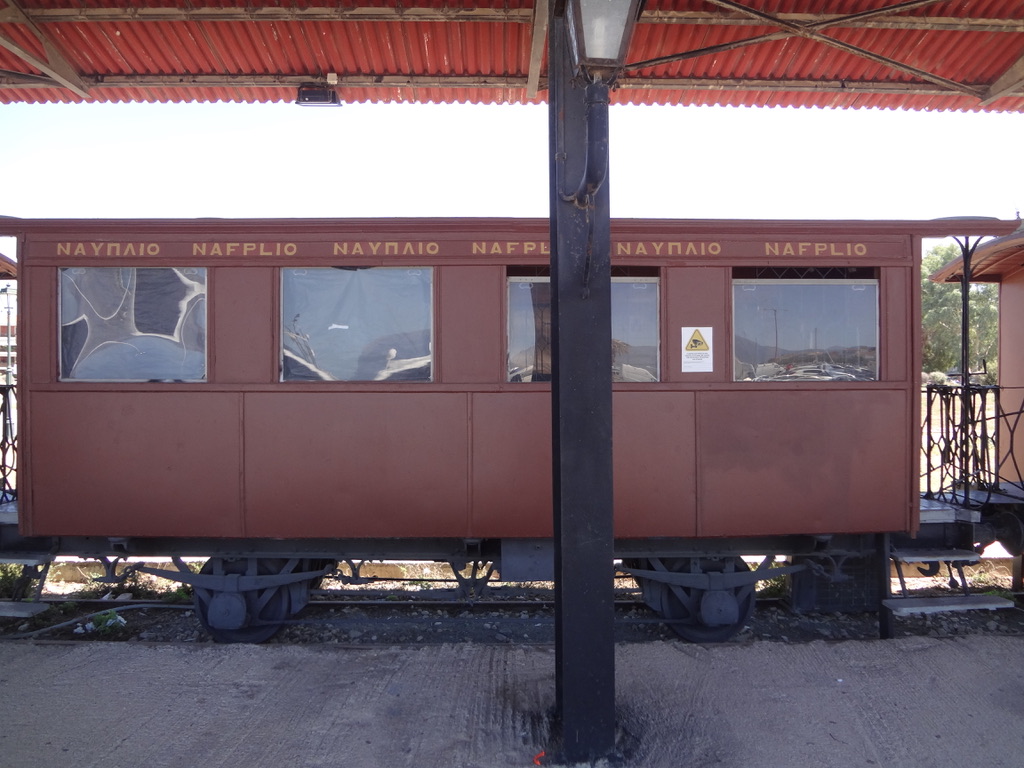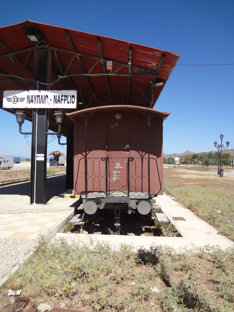 The usual parking place in Napflio is a large piece of hardstanding by the port, and adjacent this is a rather dilapidated looking shelter and some vandalised rolling stock.