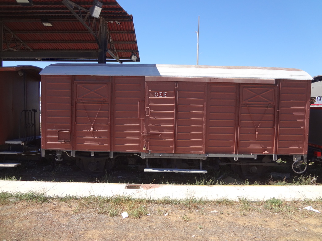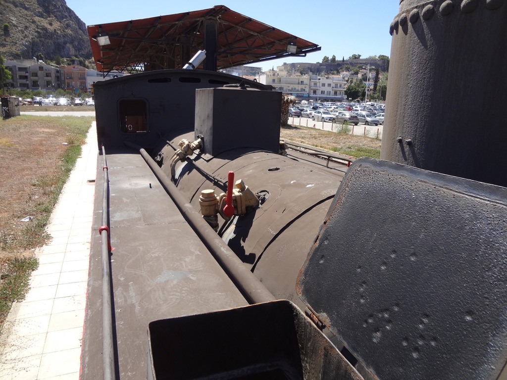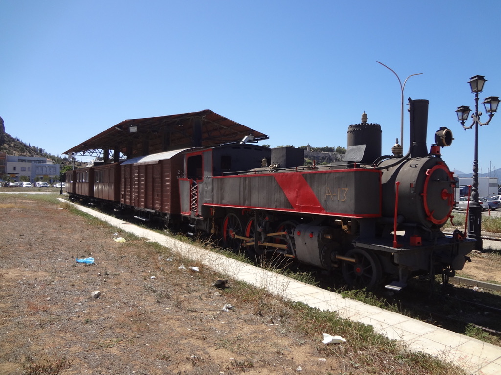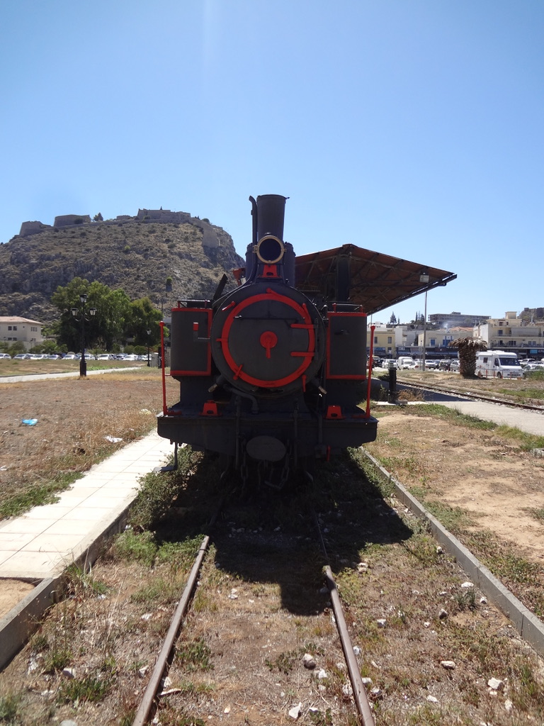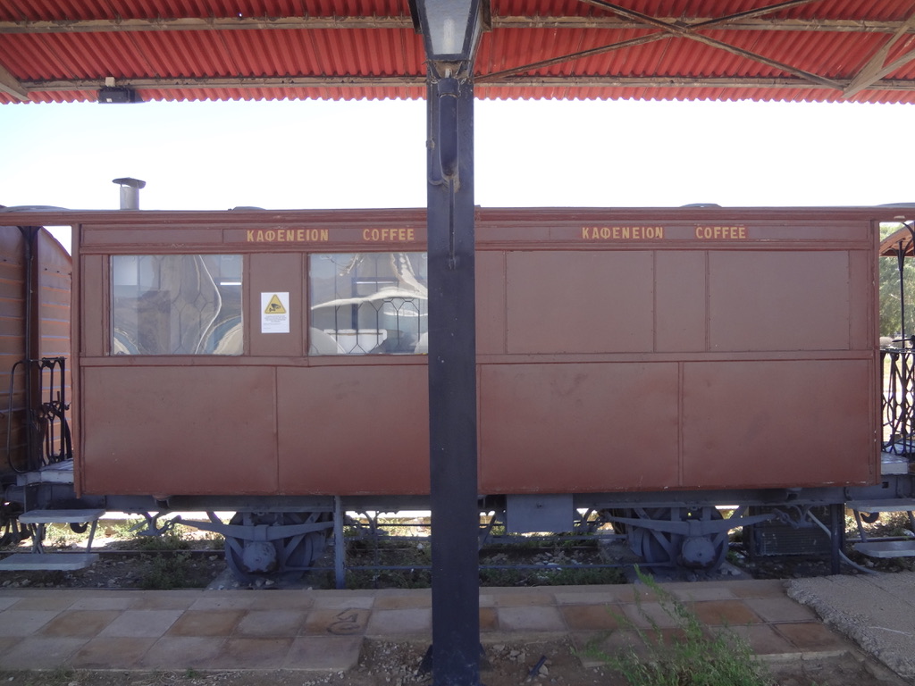 The usual parking place in Napflio is a large piece of hardstanding by the port, and adjacent this is a rather dilapidated looking shelter and some vandalised rolling stock.