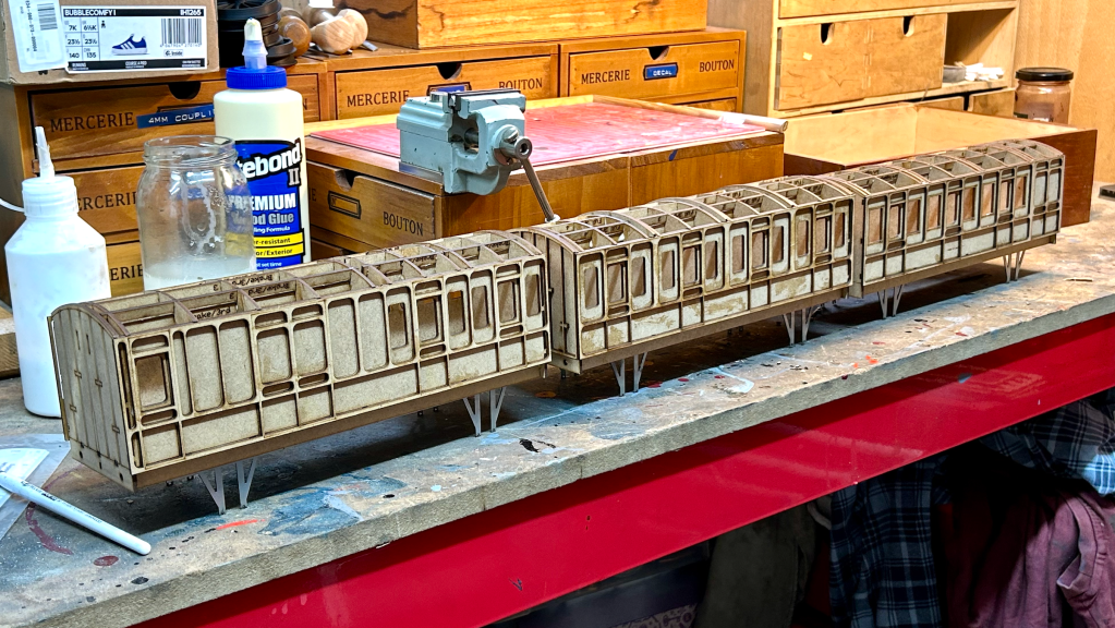 Had I the benefit of forethought I would probably have simply used the wonderful 4w freelance coaches from G1-3D.uk by Mr. P. Jackman, but at least using the underframes from this model gives the model a real uplift.