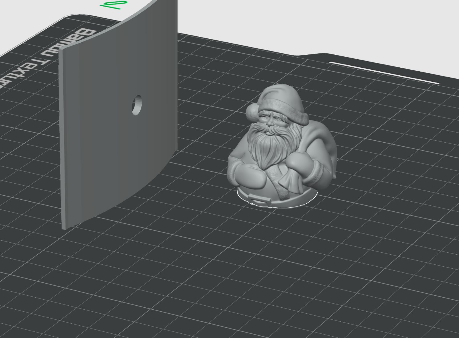 I modified the roof of the locomotive to have a circular hole for fitting a momentary-contact switch, shown here next to a Father Christmas model I split to put in the cab: