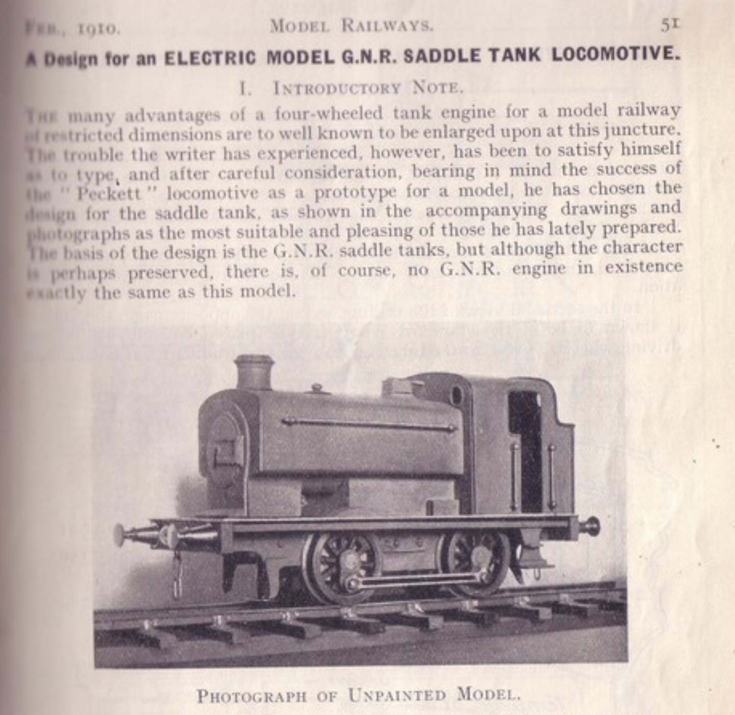 The Greenly Starter is a locomotive produced by Mr. D. Viewing sponsored by and created for the Gauge 1 Model Railway Association. Its basis is a starter locomotive designed for Gauge 2 by Henry Greenly and published in the winter 1910 issues of Model Railways: