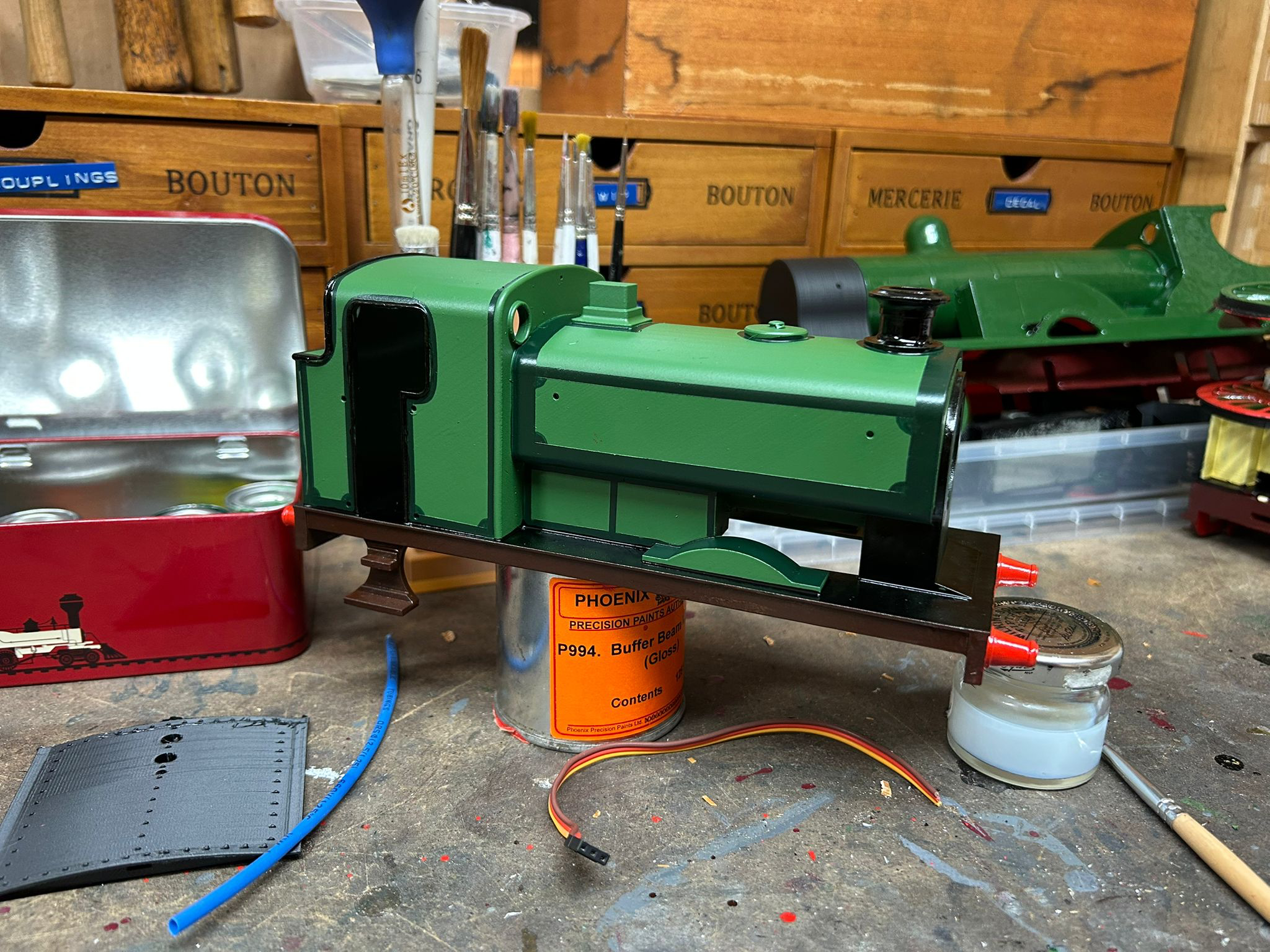 With the rest of the black beading painted and the smokebox, buffers and couplings fitted, the model is starting to look a lot more like a locomotive!