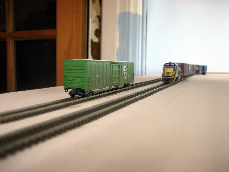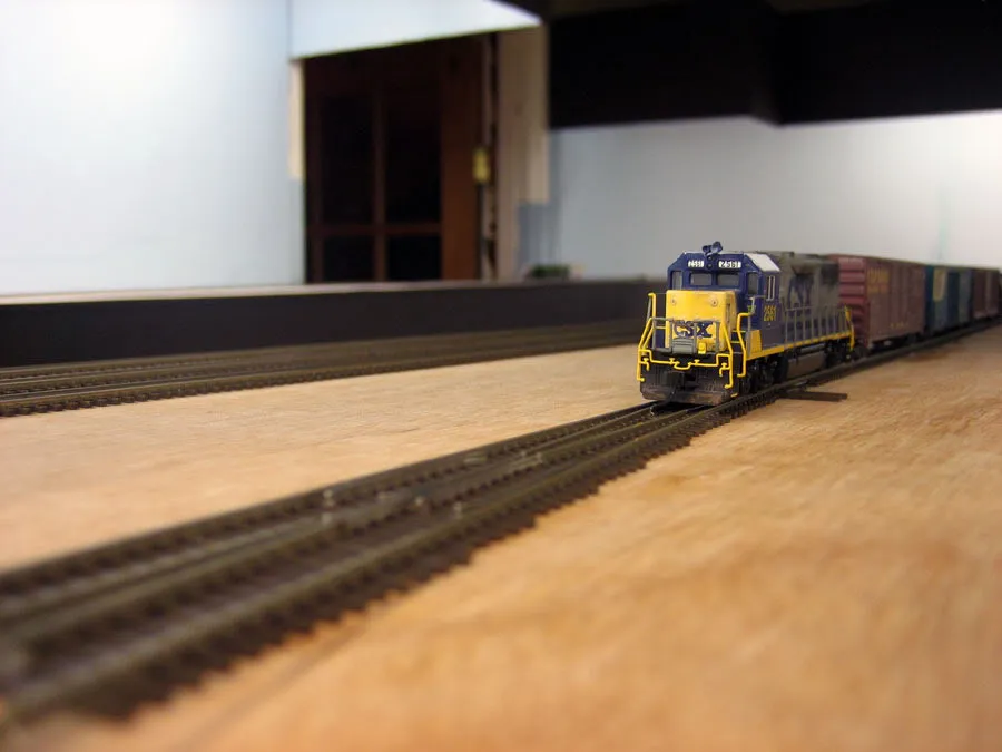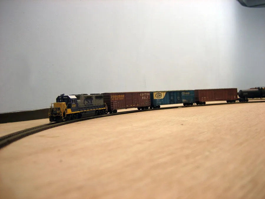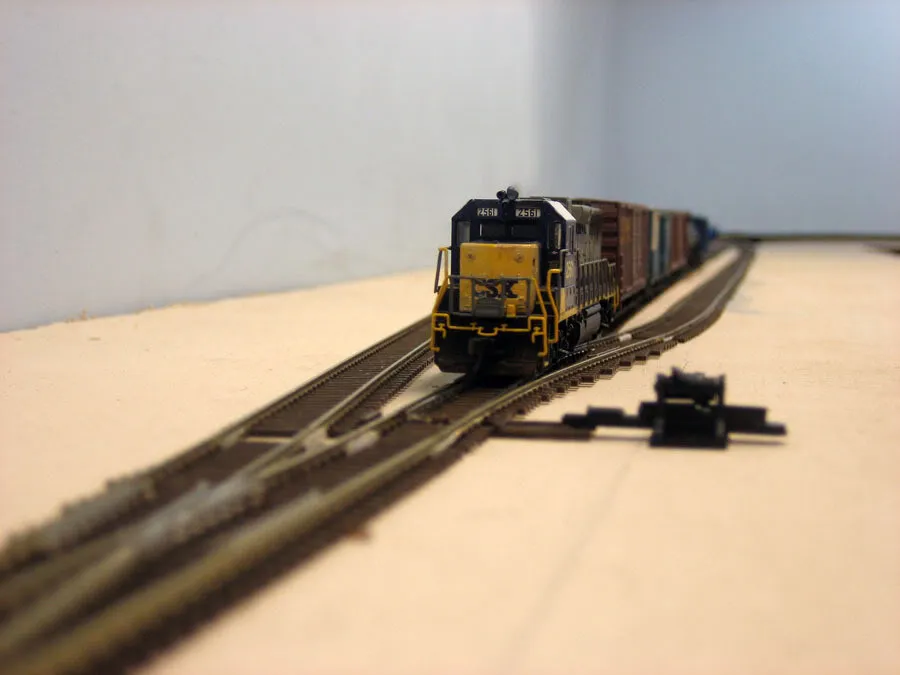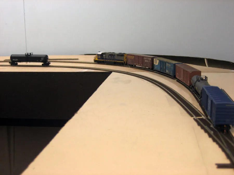 This layout is a distributed switching layout, occupying almost 40 linear feet of space for a single switching area. The area is criss-crossed by roads which can’t be blocked, and must be protected by flares before crossing. The cars are switched using CC/WB (in theory used as a mechanism to create a mimickry of a real-life CSX switchlist) for the single switching job which starts and terminates on the mainline at the end of the peninsula.