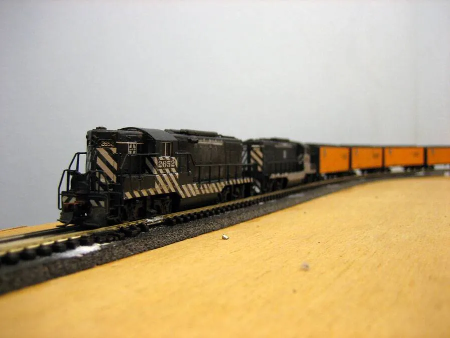 N gauge provides for far more scope for variety in the design of a layout in a similar space to H0, and my eyes being relatively healthy I found very little to complain about for the switch. DCC made consisting of A+B+B+A matched sets very easy which would’ve required alot of fiddling in DC. Expansive staging made a the suspension of disbelief easier (although there was a drawback, see below) and the live interchange (where the RI had it’s own staging track and loco that operated) was a favorite feature of mine.
