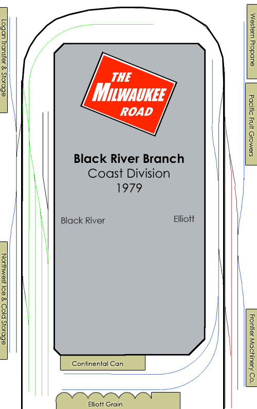 Black River Junction is a switching layout based in Washington, USA near Tacoma. It is set on the Milwaukee Road in the period just before the Pacific extension was abandoned around 1980, depicting the rural-switching common to isolated communities.