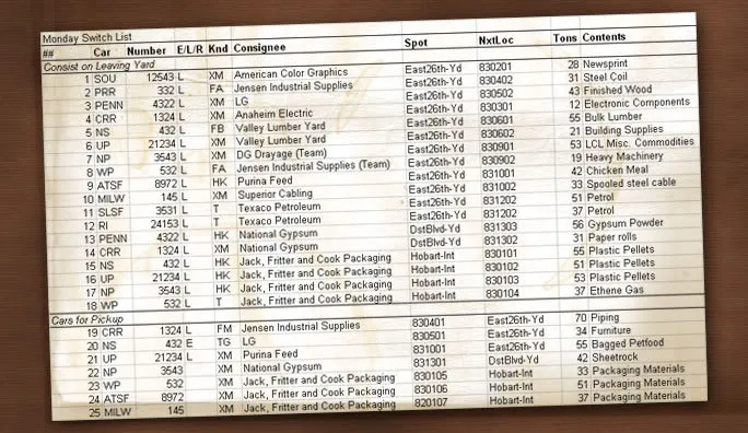 Here’s an example switch-list I made: