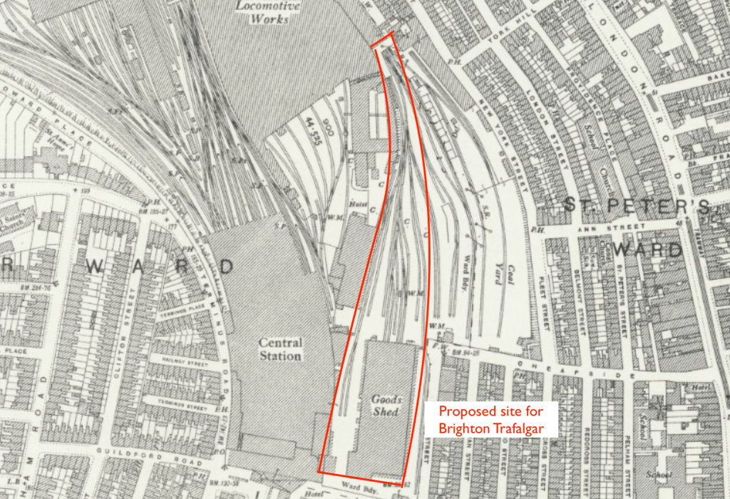 This meant the original Brighton station did not to be rebuilt substantially, and after the absorption of the BLHR into the the LBSCR, the two termini act in concert to service the traffic from east, north and west, the Trafalgar station typically dealing with less prestigious and overflow traffic.