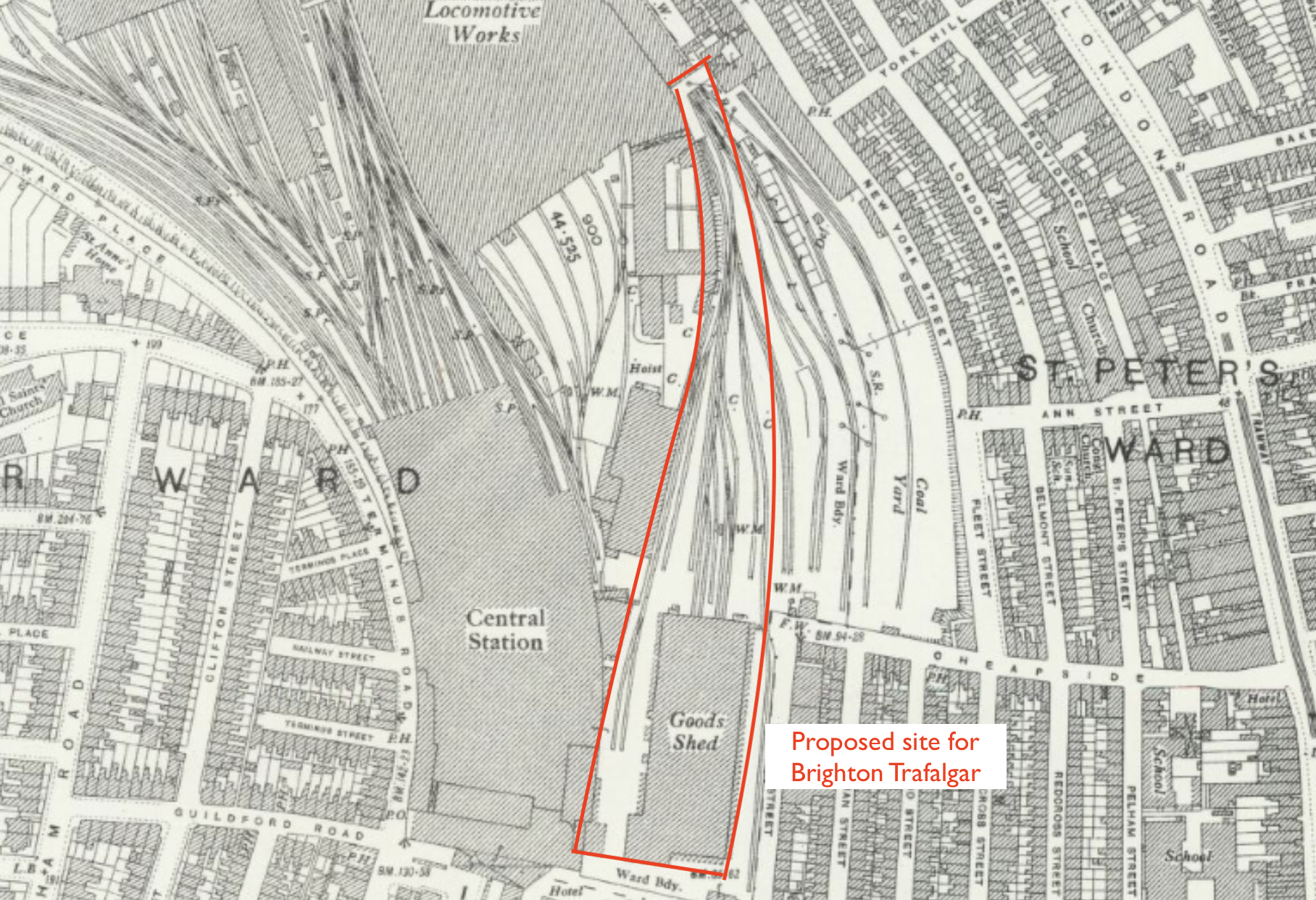 This meant the original Brighton station did not to be rebuilt substantially, and after the absorption of the BLHR into the the LBSCR, the two termini act in concert to service the traffic from east, north and west, the Trafalgar station typically dealing with less prestigious and overflow traffic.