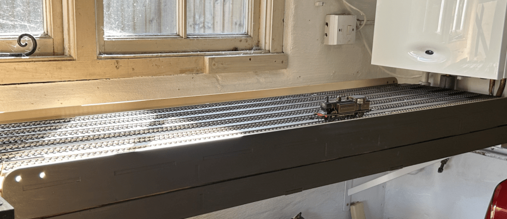 I decided to use a traverser fiddle yard for this layout, and in retrospect I wish I had the space for a traditional fan of sidings. Maybe that’s another thing which can come in due course – but for now it’s usable.
